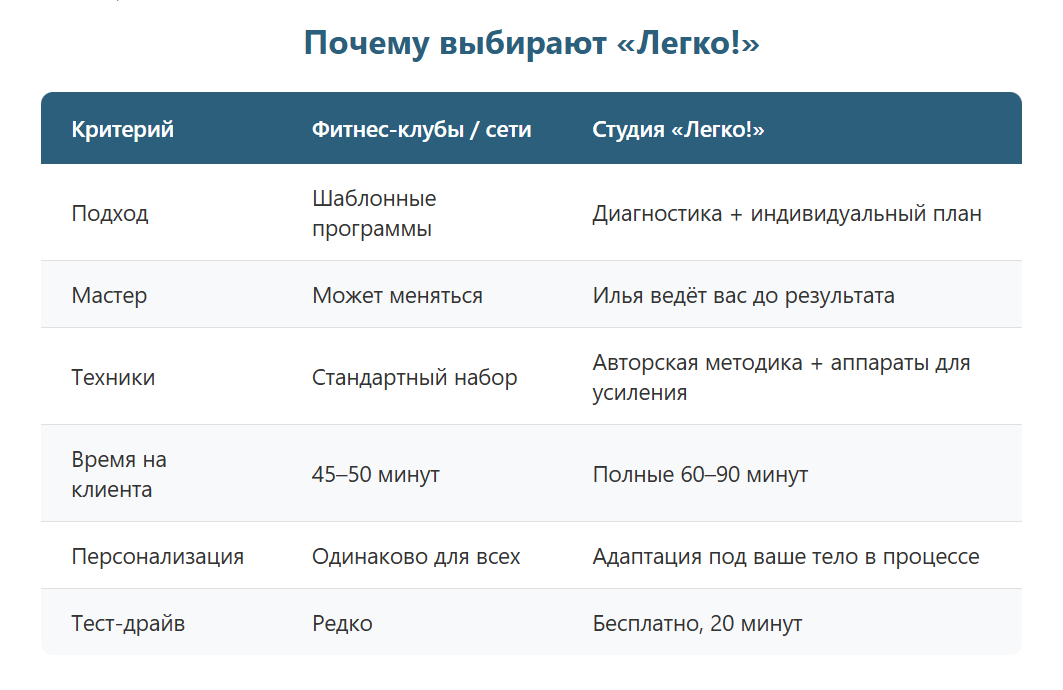 Почему выбирают «Легко!», а не фитнес-клубы и сетевые салоны